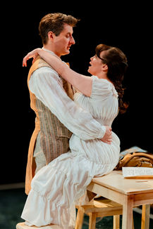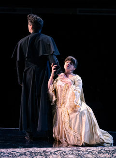 Director Rory Pelsue zeroed in on desire and dissipation. He took Manon’s Act 3 Cours la Reine triumph to its logical extreme, staging it as a striptease/bondage-party performance—in period underwear, stockings and heels—by a top prostitute; when she seduced Des Grieux away from his priestly vows in St. Sulpice, the line “Don’t you know my hands” was explicitly blocked to be sure that he would. With the aid of Sara Gettelfinger’s choreography, the five subordinate characters jelled as an ensemble, supplying ambience and making up for the missing chorus. It was all a stimulating change from opera-house productions, which often lean on 18th-century elegance instead of exploring the seamy underside and corruption of the demimonde that is at the heart of the piece.